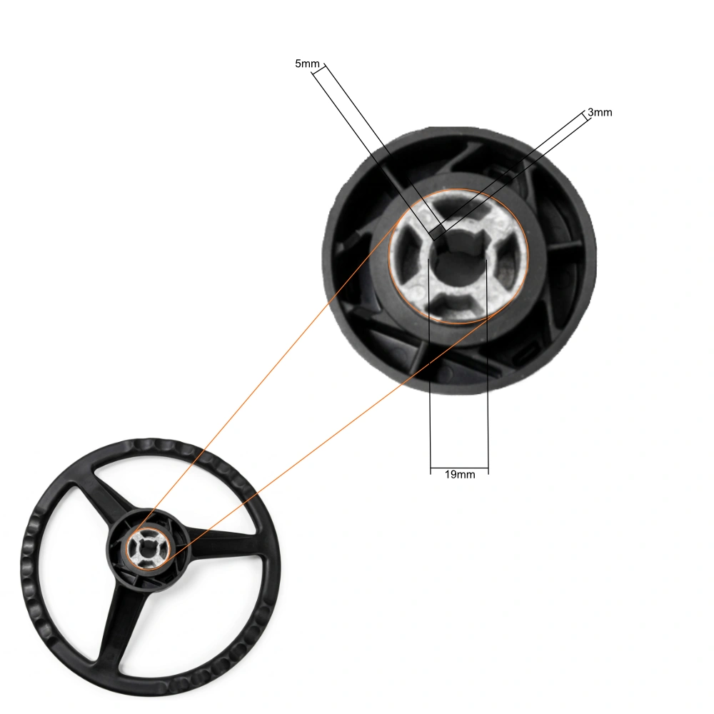 Volante de tres radios a prueba de golpes con buje termoplástico con agarre rígido.